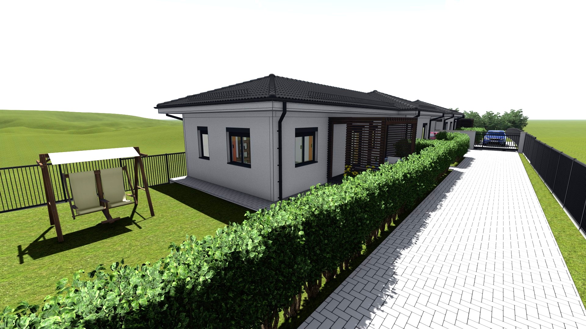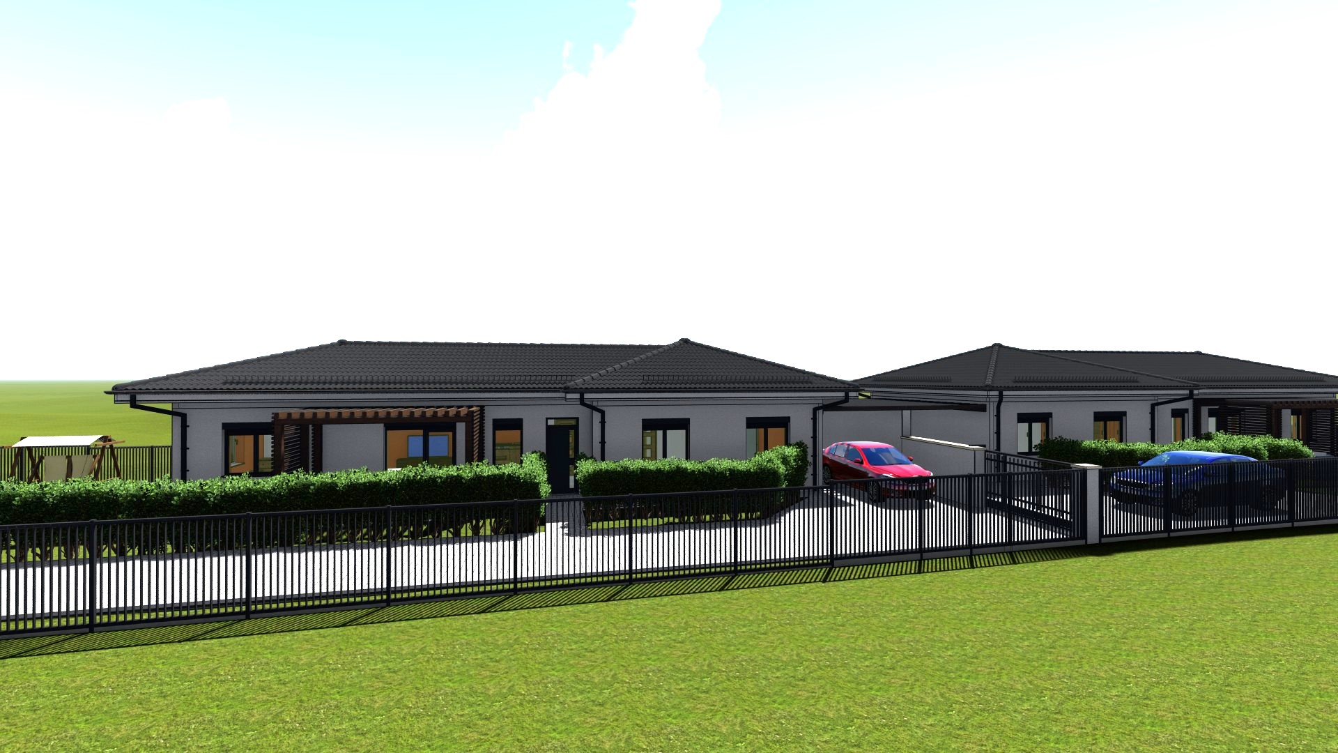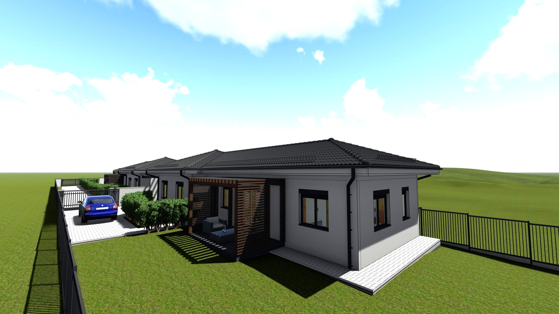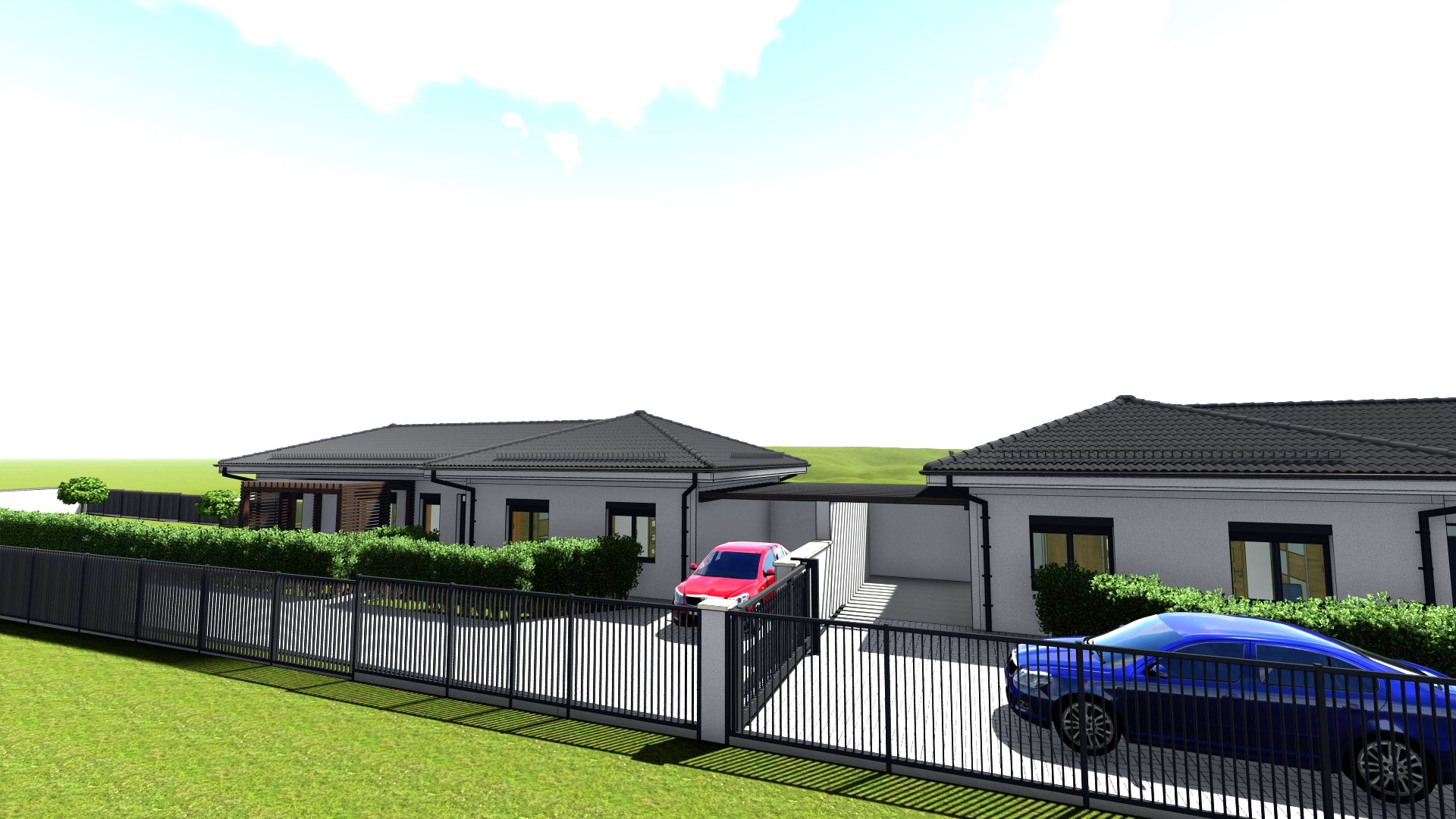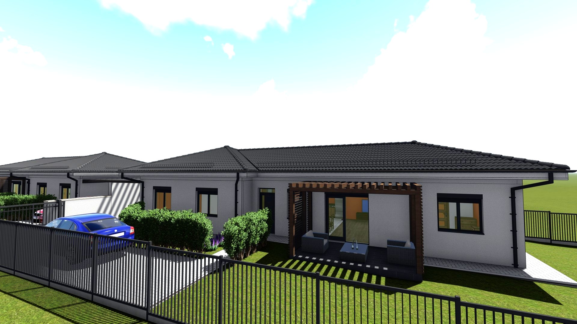 Eladásra kínálunk egy átgondolt, letisztult formavilágot prezentáló, egyedi stílusban épülő 97 m²-es ikerházat, amely tökéletes harmóniát teremt modern design és praktikus elrendezés között.