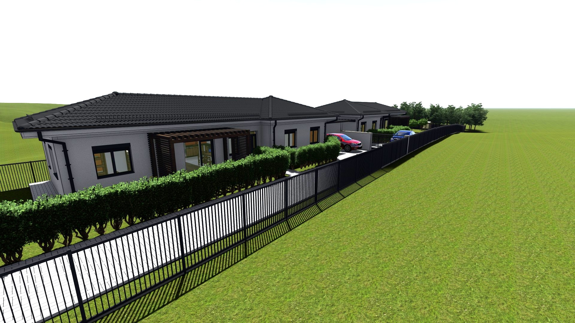 Az ingatlan különlegessége: az ikerházak egymás mögött helyezkednek el, kizárólag az autóbeálló falazatánál érintkeznek, így Ön teljes intimitást élvezhet saját elegáns, épített utcafronti kerítéssel rendelkező 700 m²-es telekrészével.