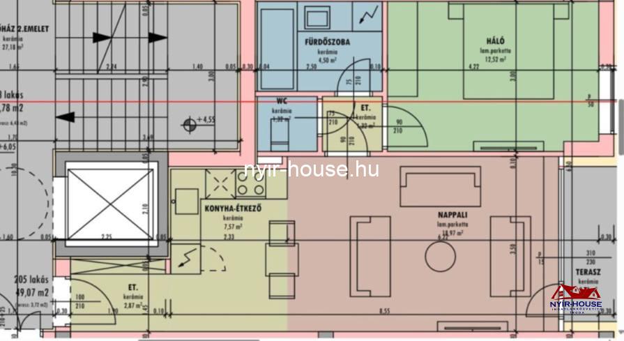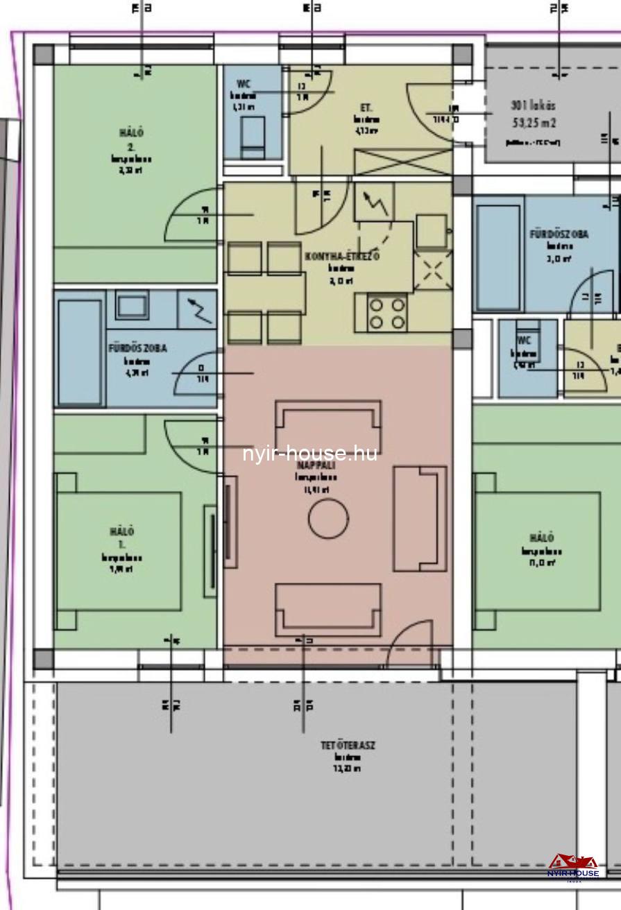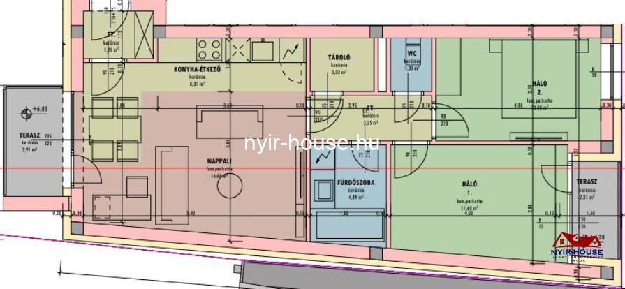 • Terasz: összesen 6,72 m² (3,91 + 2,81 m²)