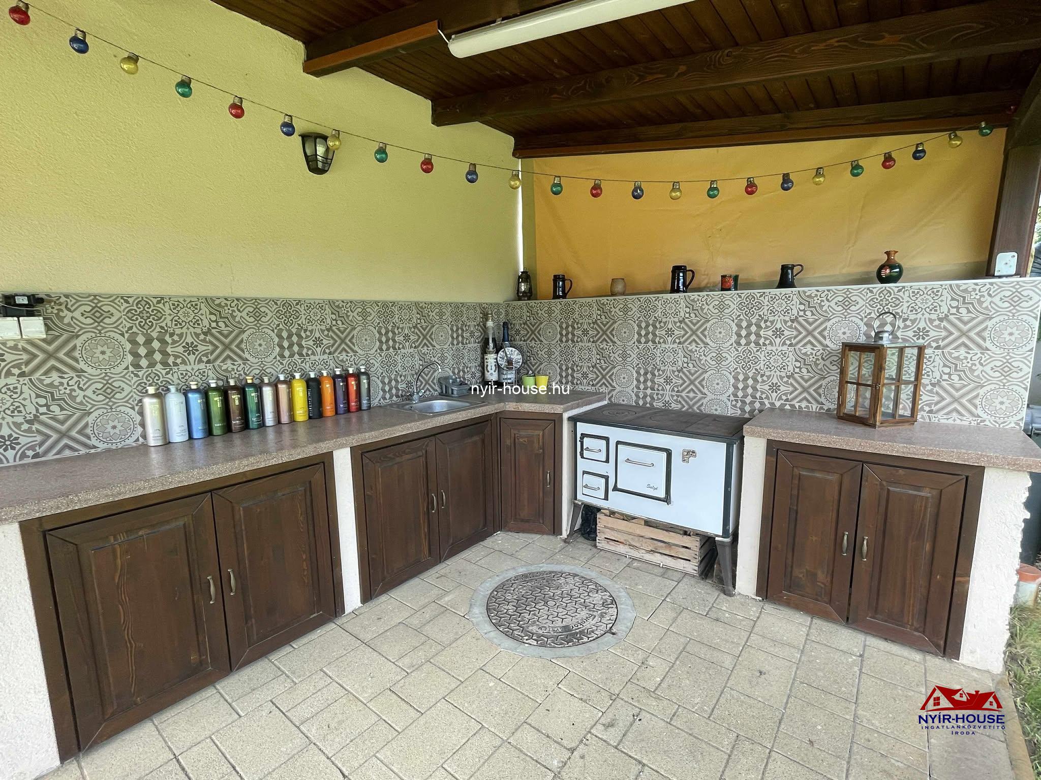 A gondozott, automata öntözőrendszerrel és csepegtetővel felszerelt kertben filagória található, benne teljes konyha, tűztér és sparhelt, így tökéletes helyszíne a családi és baráti összejöveteleknek. A kerti eszközök számára falazott tároló biztosított.