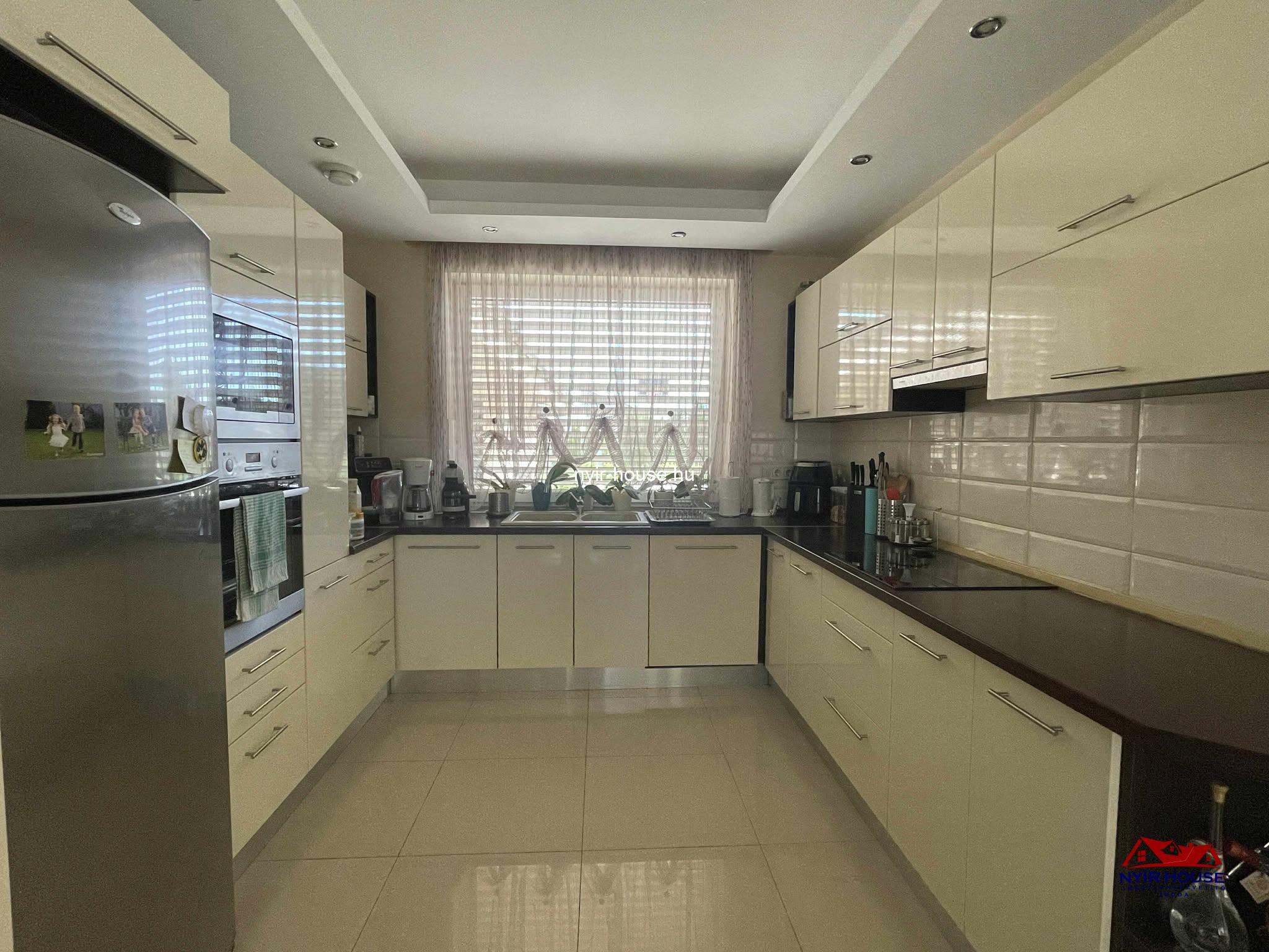 A 166 m²-es lakótér tágas és praktikus elrendezésű: amerikai konyhás nappali, kamra, mosókonyha, gardrób, 3+1 szoba, fürdőszoba káddal, bidés WC-vel és zuhanyzóval, valamint külön vendég-WC kapott helyet. Minden helyiség akadálymentes, a beépített bútorok és szaniterek modern, igényes kialakításúak.