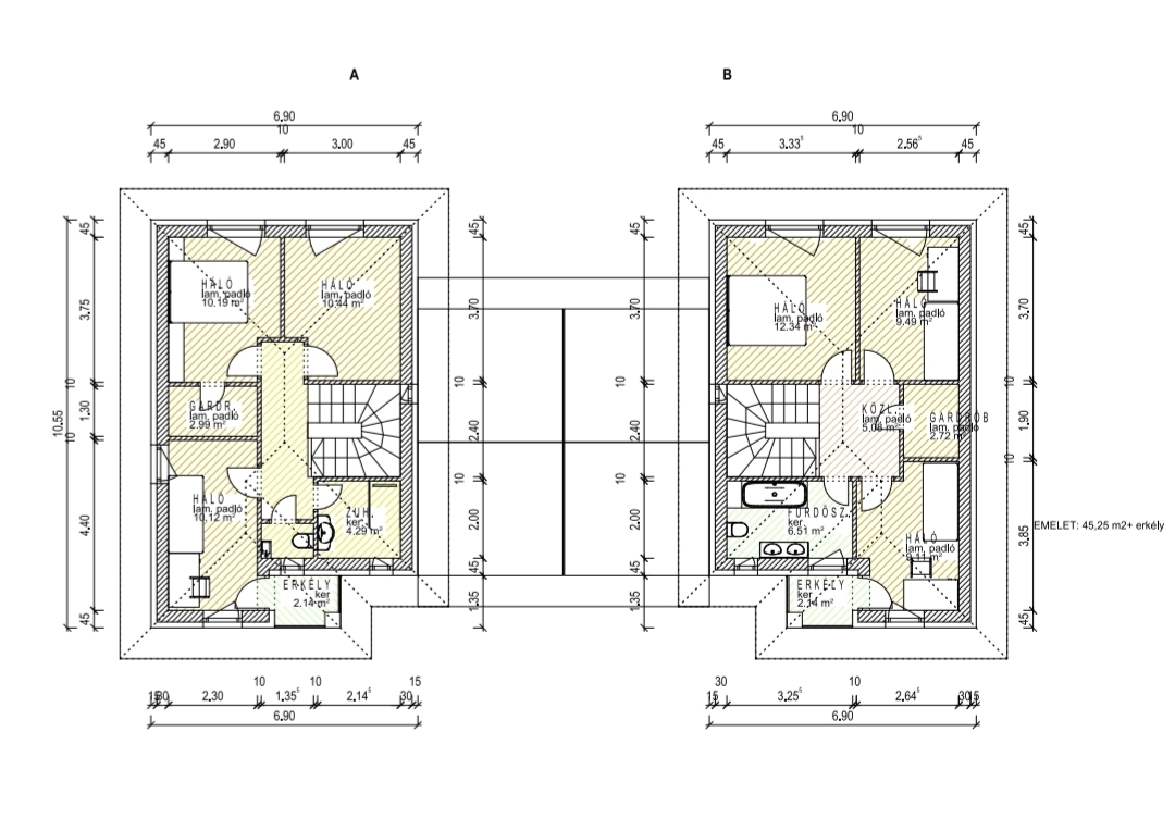 Az emeleti rész a pihenésé és a privát élettéré: